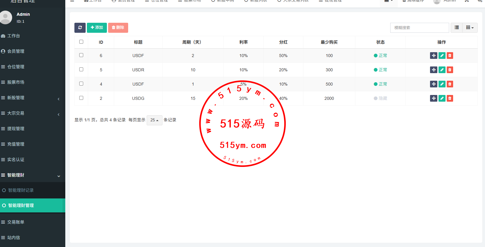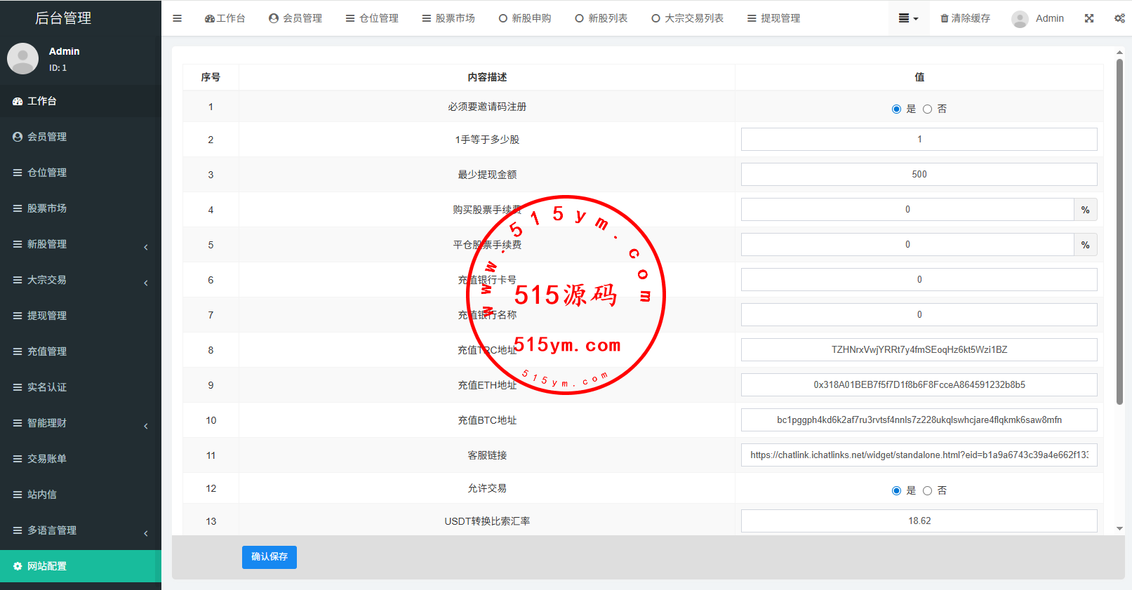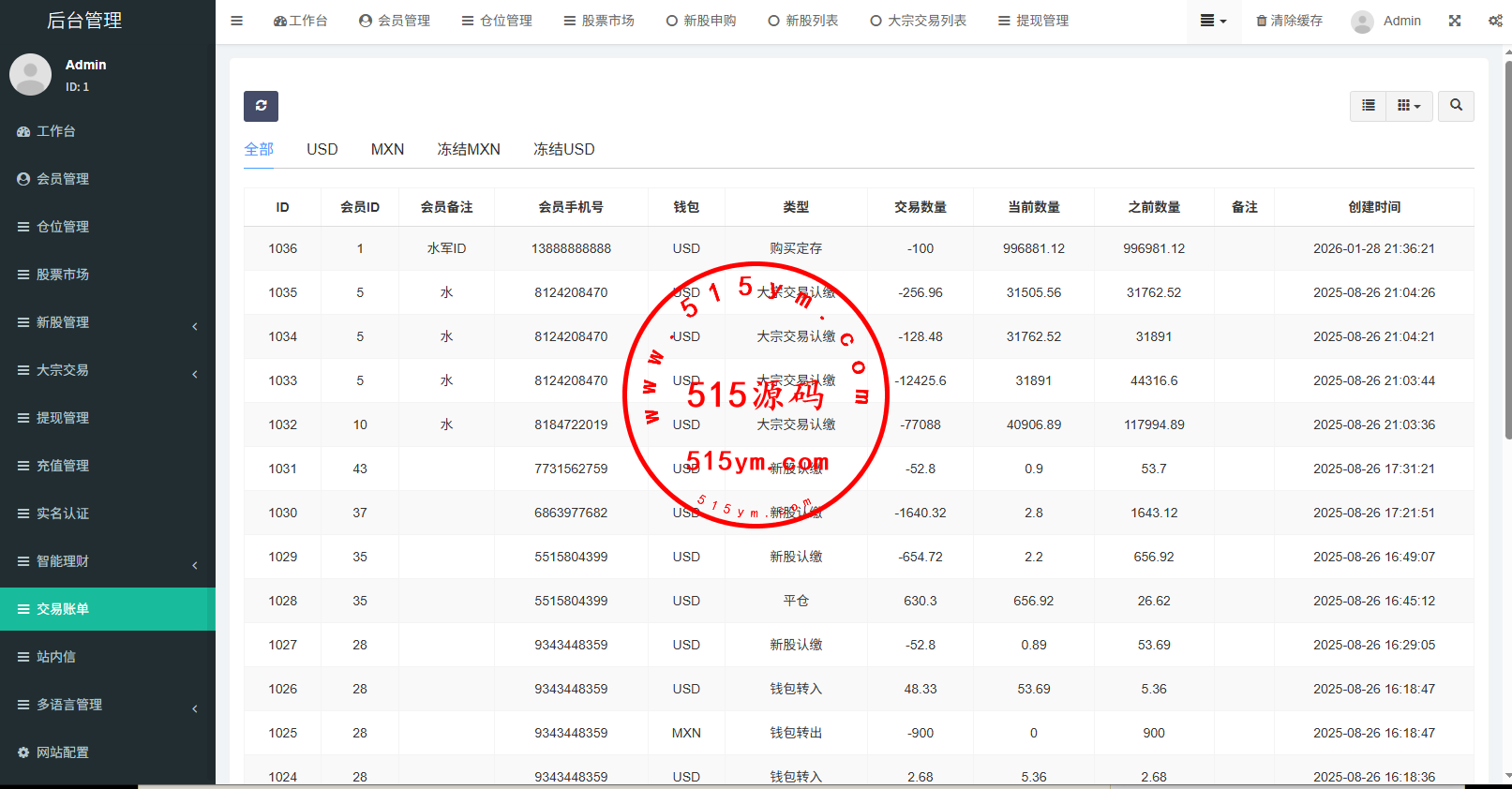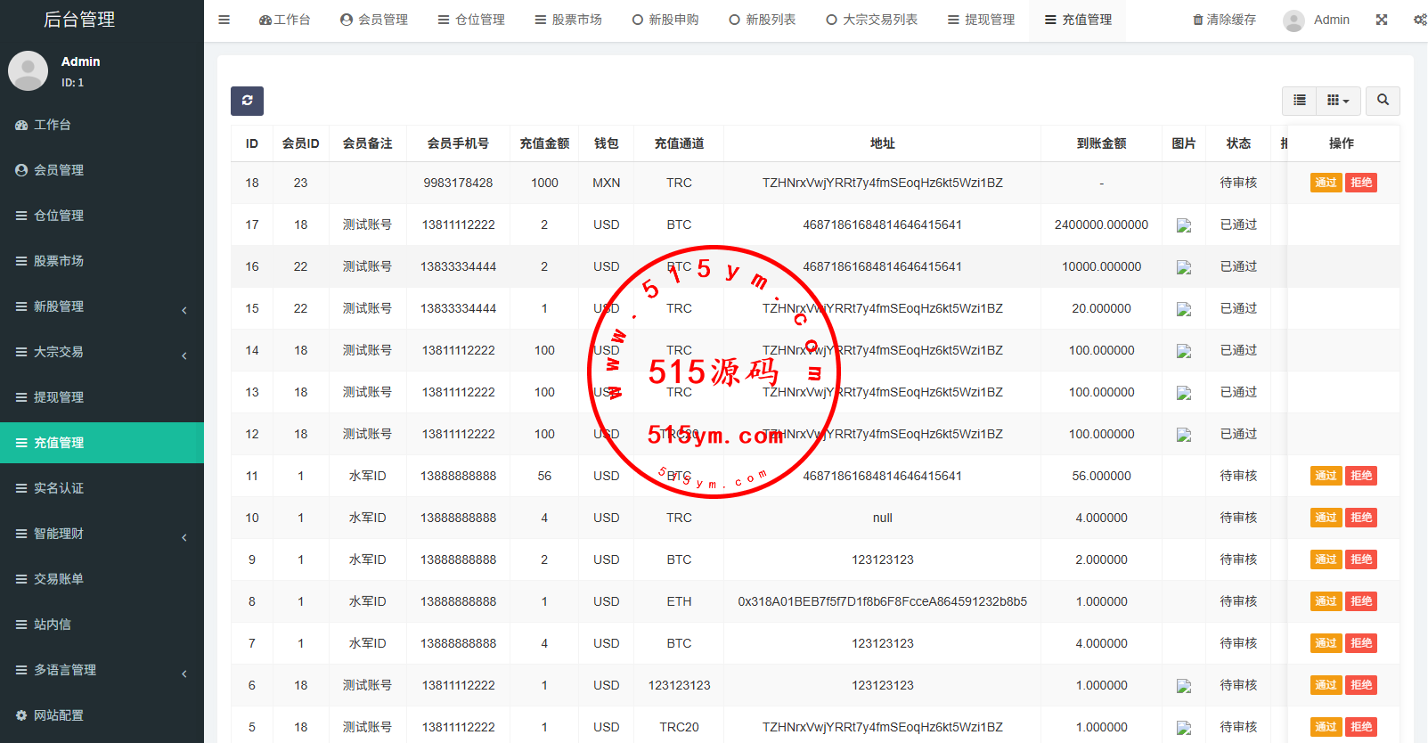 支持代理后台,usdt充值,大宗交易,新股认购,产品理财等功能