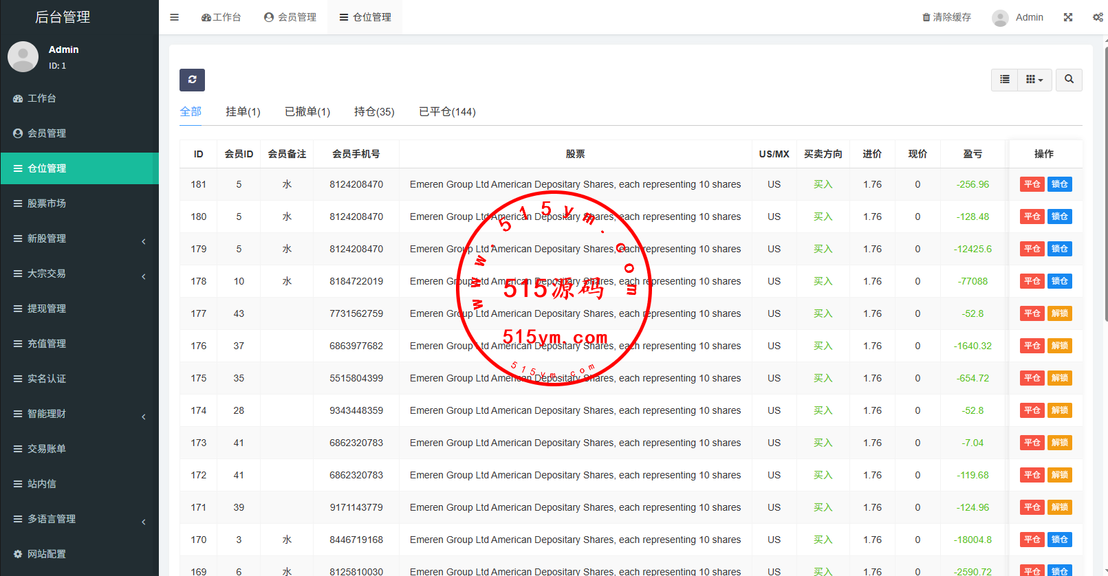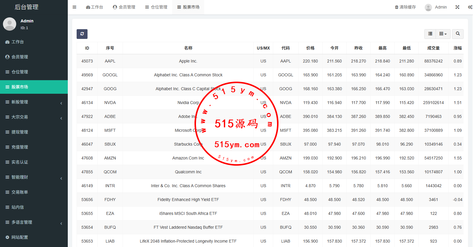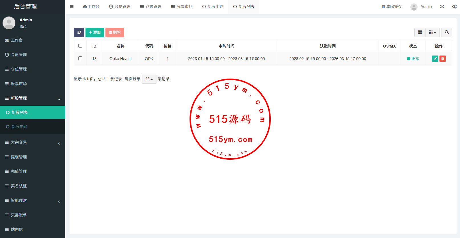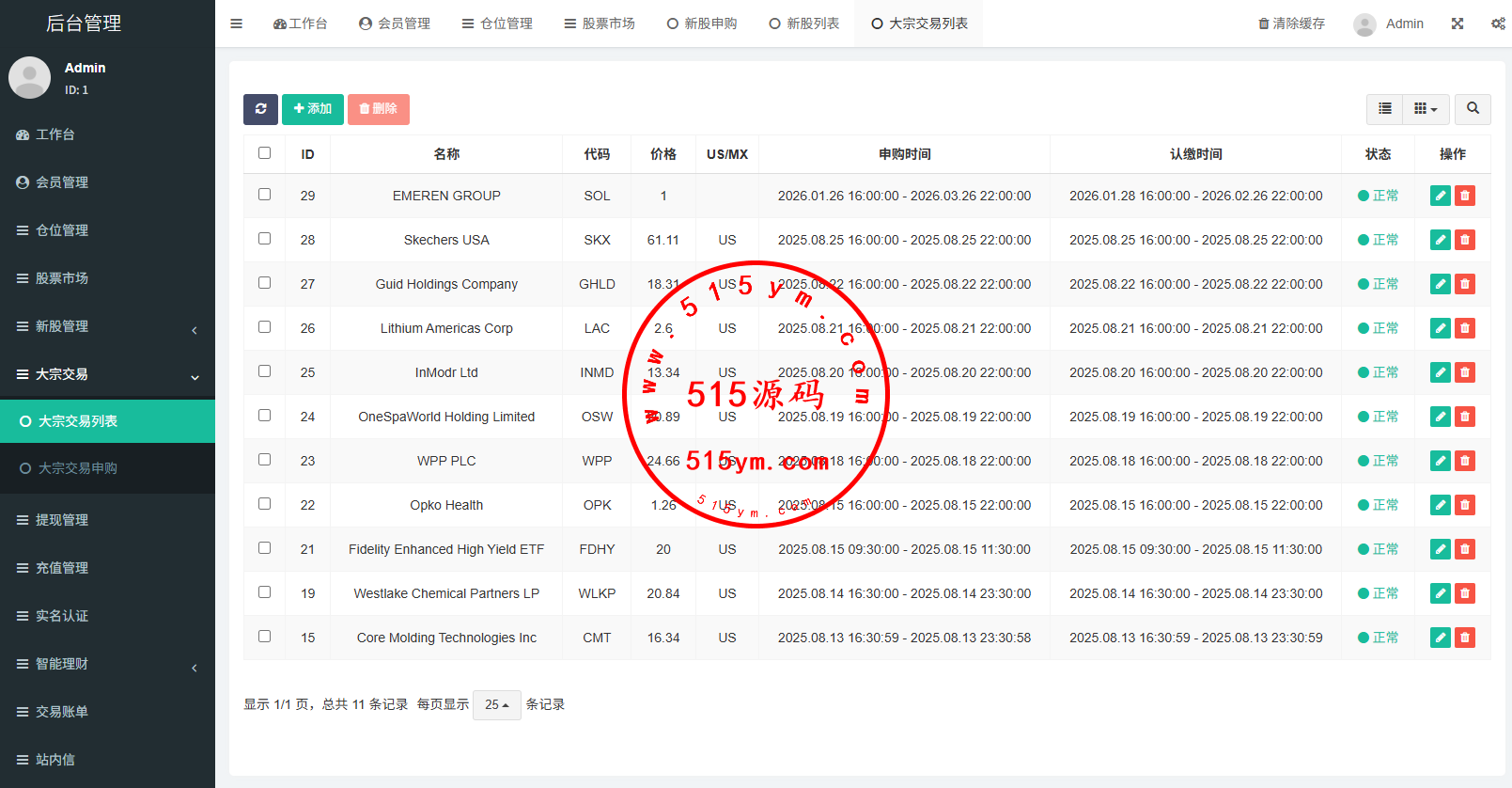 支持代理后台,usdt充值,大宗交易,新股认购,产品理财等功能