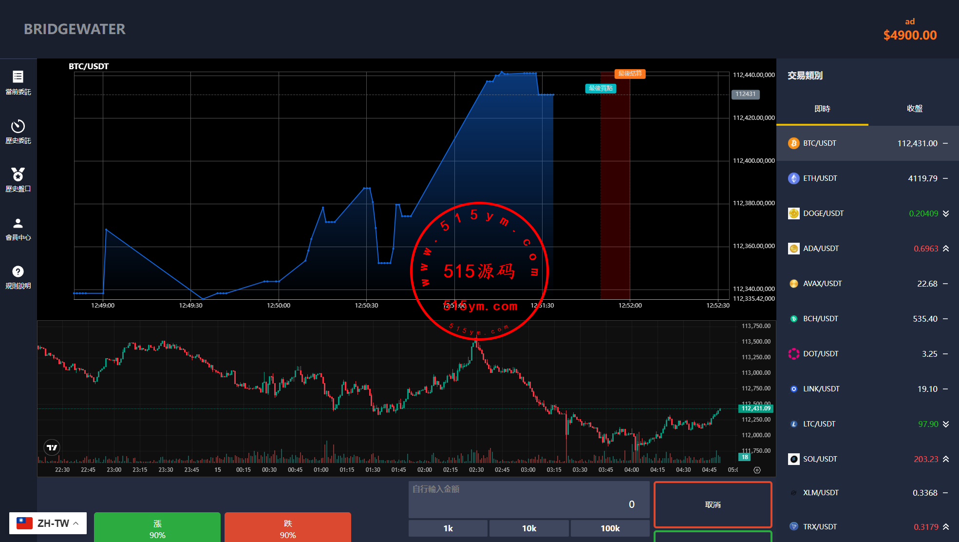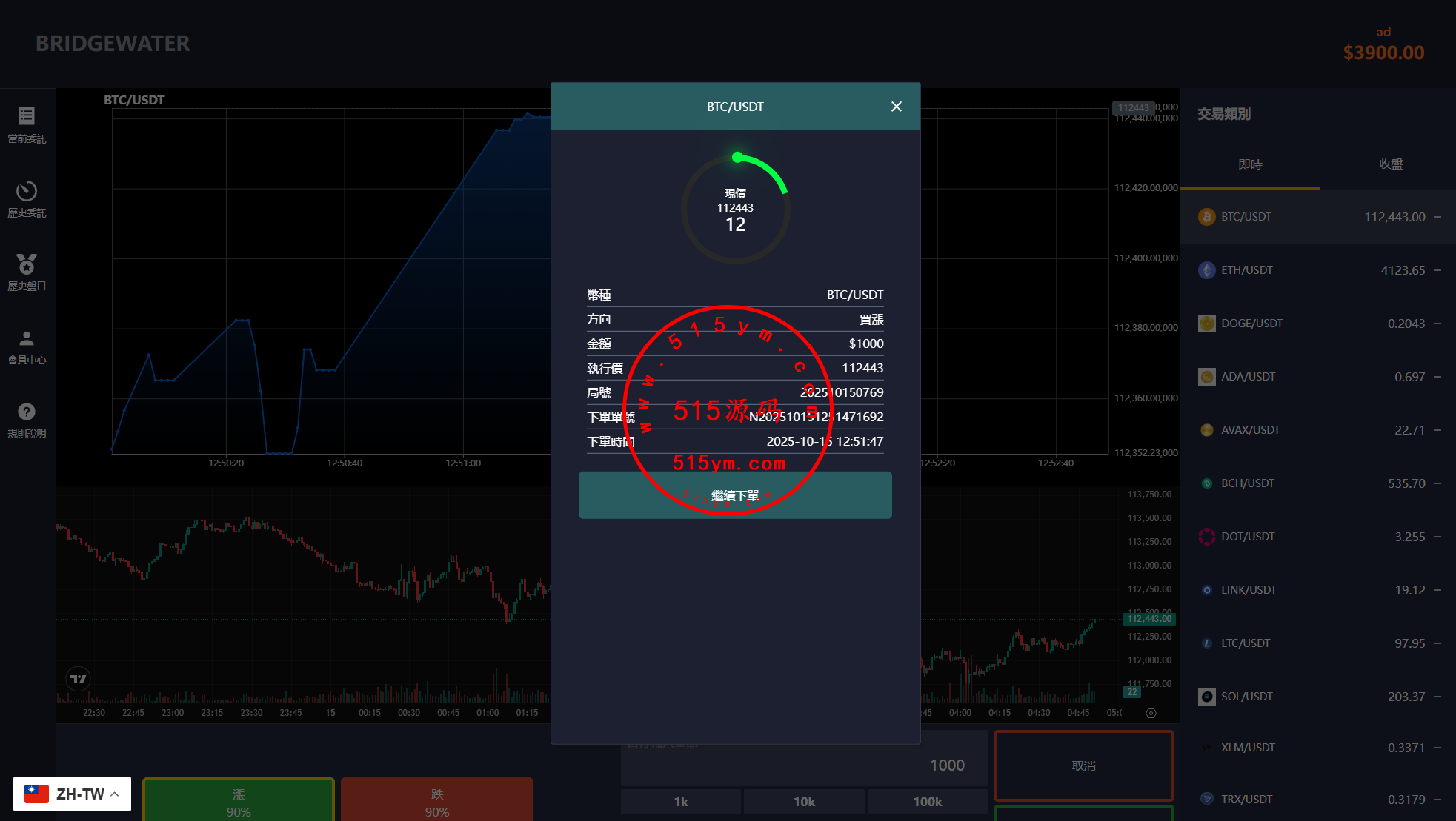 多语言虚拟币交易系统/秒合约交易/伪交易所/时间盘