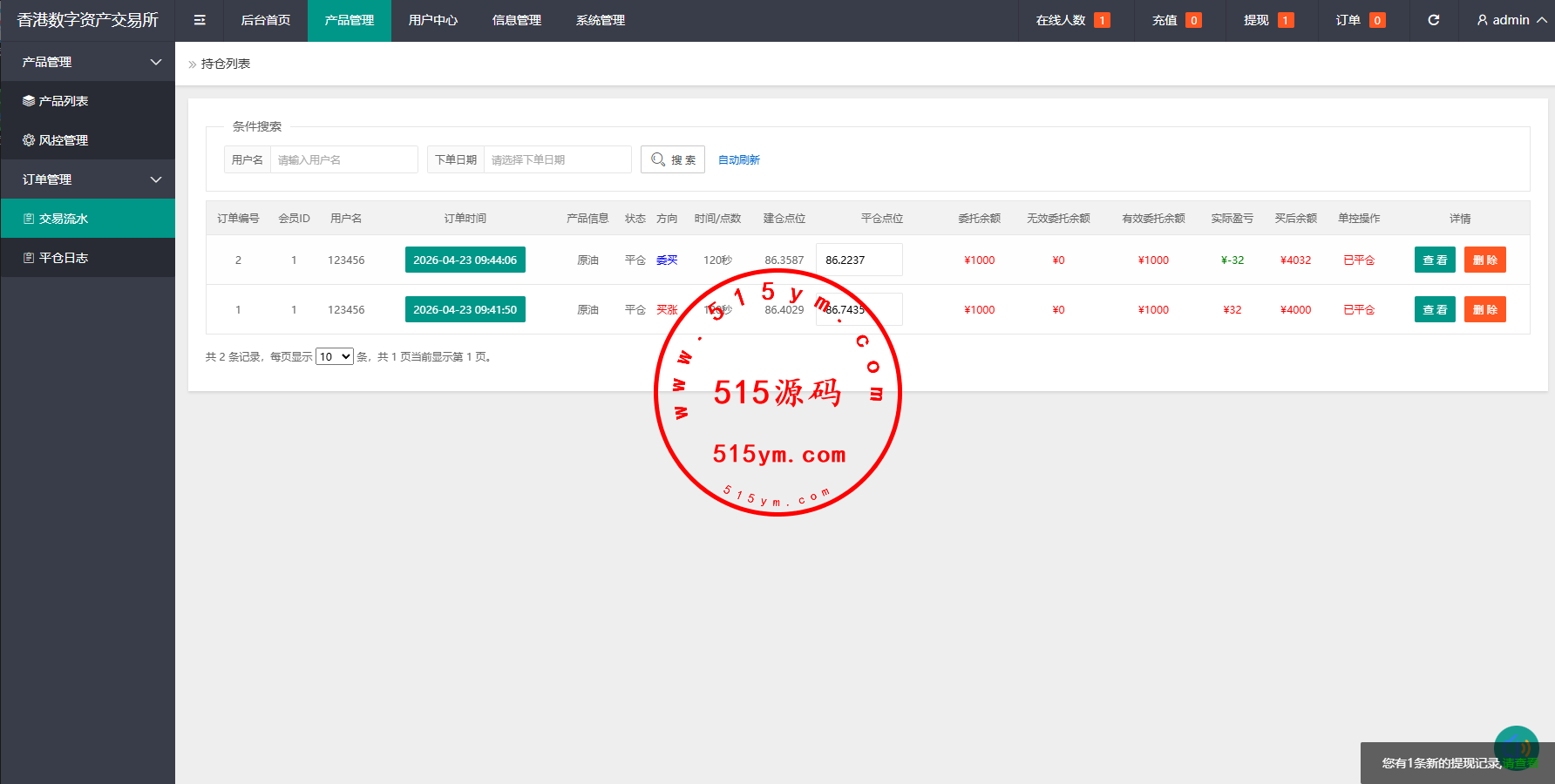 产品后台可随意更改,带委买,信用分,实名认证等功能