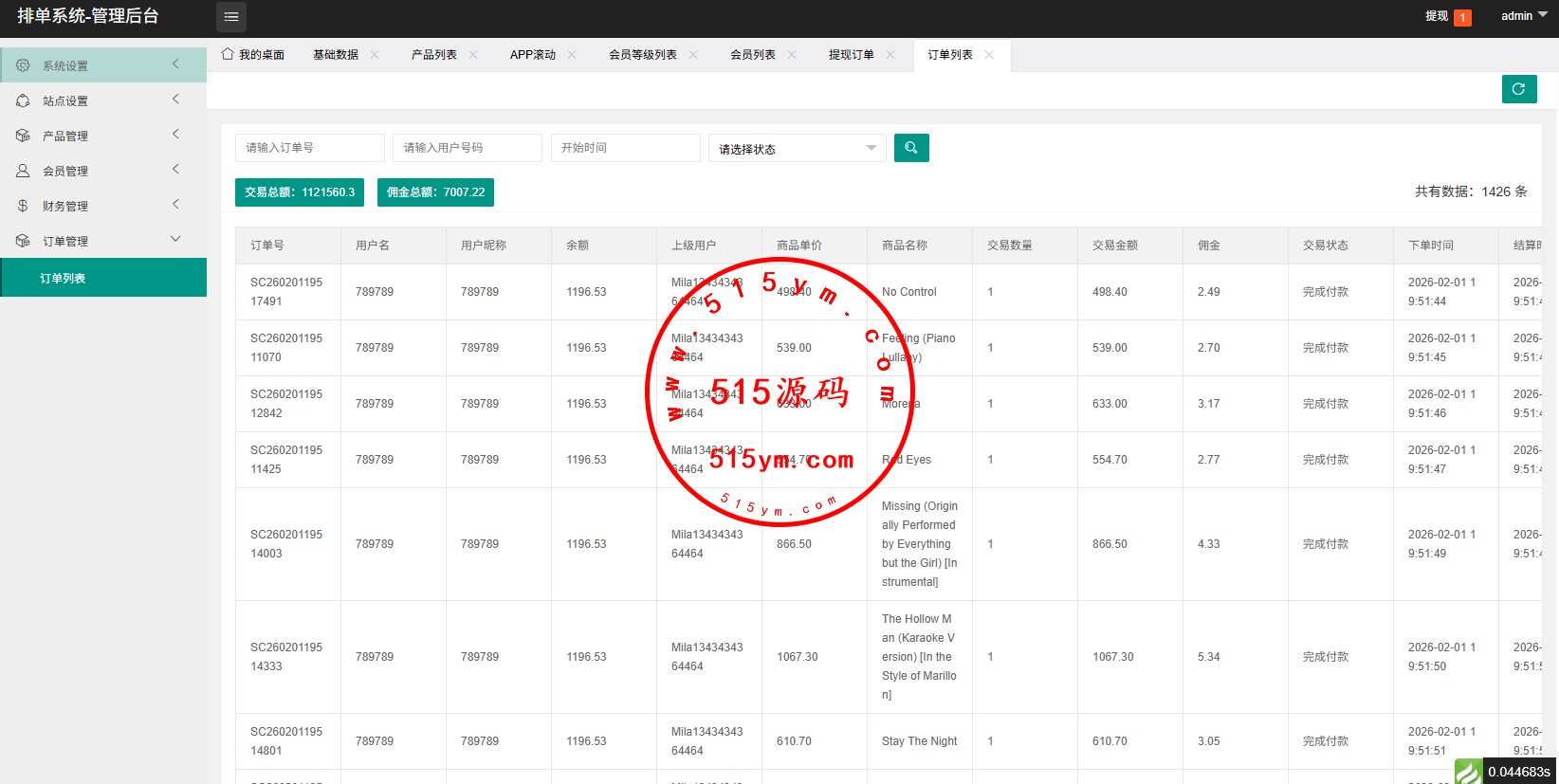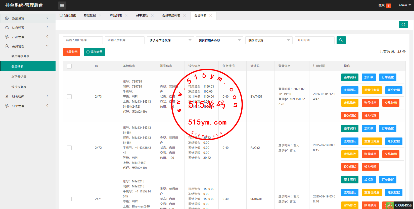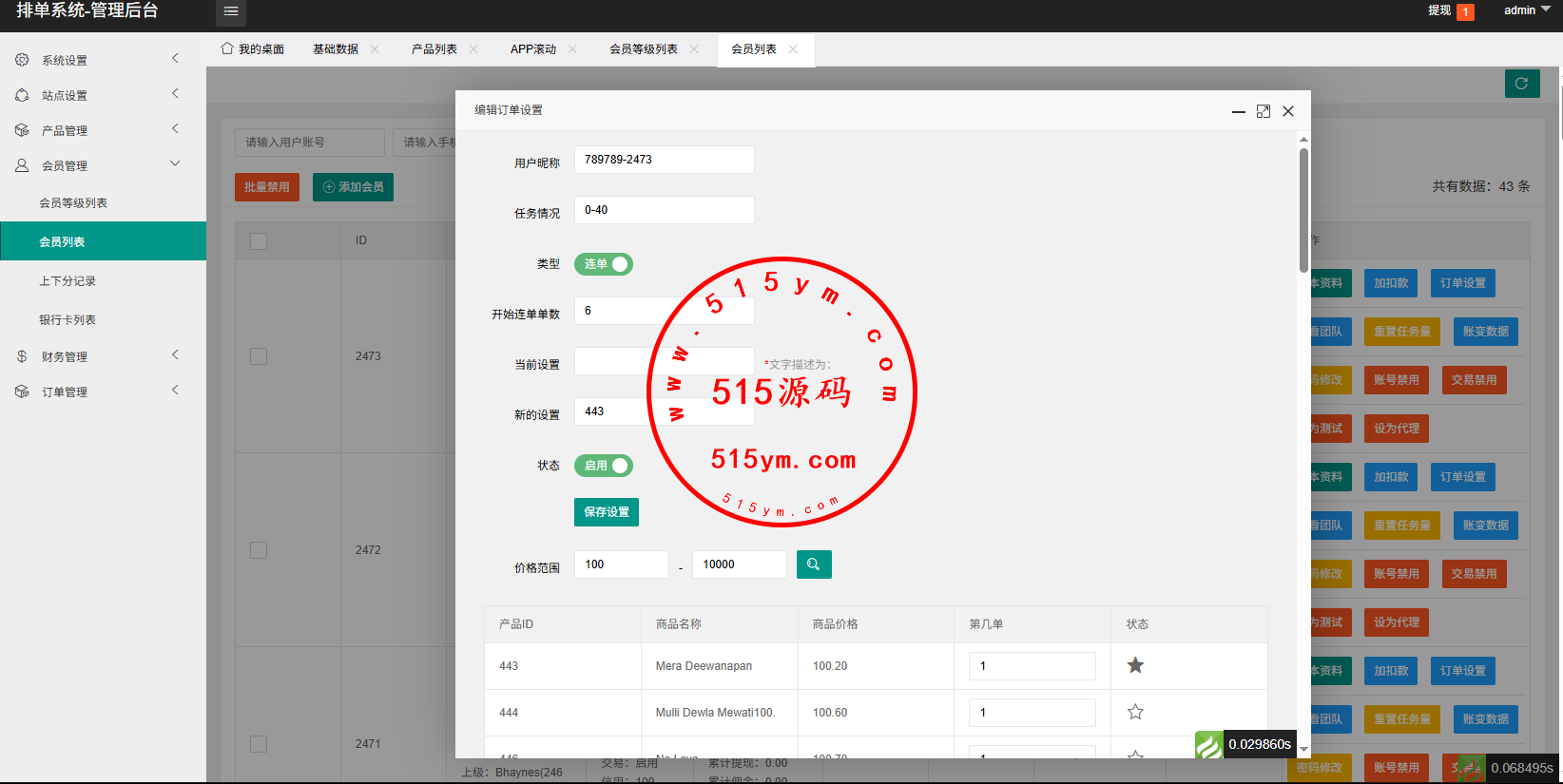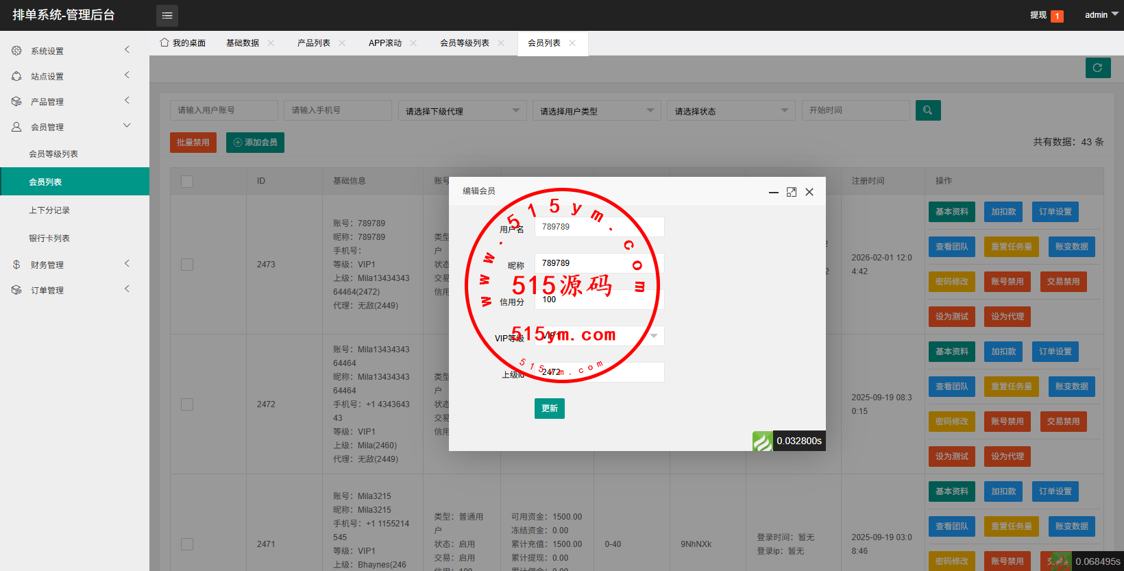 支持连单卡单,代理后台,信用分等功能